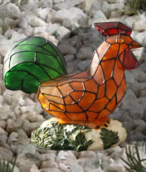 Find and compare the best prices and deals on 8''H Solar Power Garden - Rooster at a reasonable price. By day their translucent panels with Art Nouveau-style raised black outlining are brightened by surrounding light. And when dark falls, a built-in sensor automatically activates an interior light that's ever changing from red to blue to green again and again. Rooster measure about 8"H.