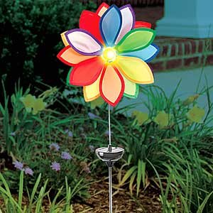 Find and compare the best prices and deals on Rainbow Solar Windmill at a reasonable price. Solar powered lighted spinning flowers stake easily into the ground and store up sunlight to produce an attractive night-time show. No cords or cables. An eye-catching 12" diameter, on 30" stake.